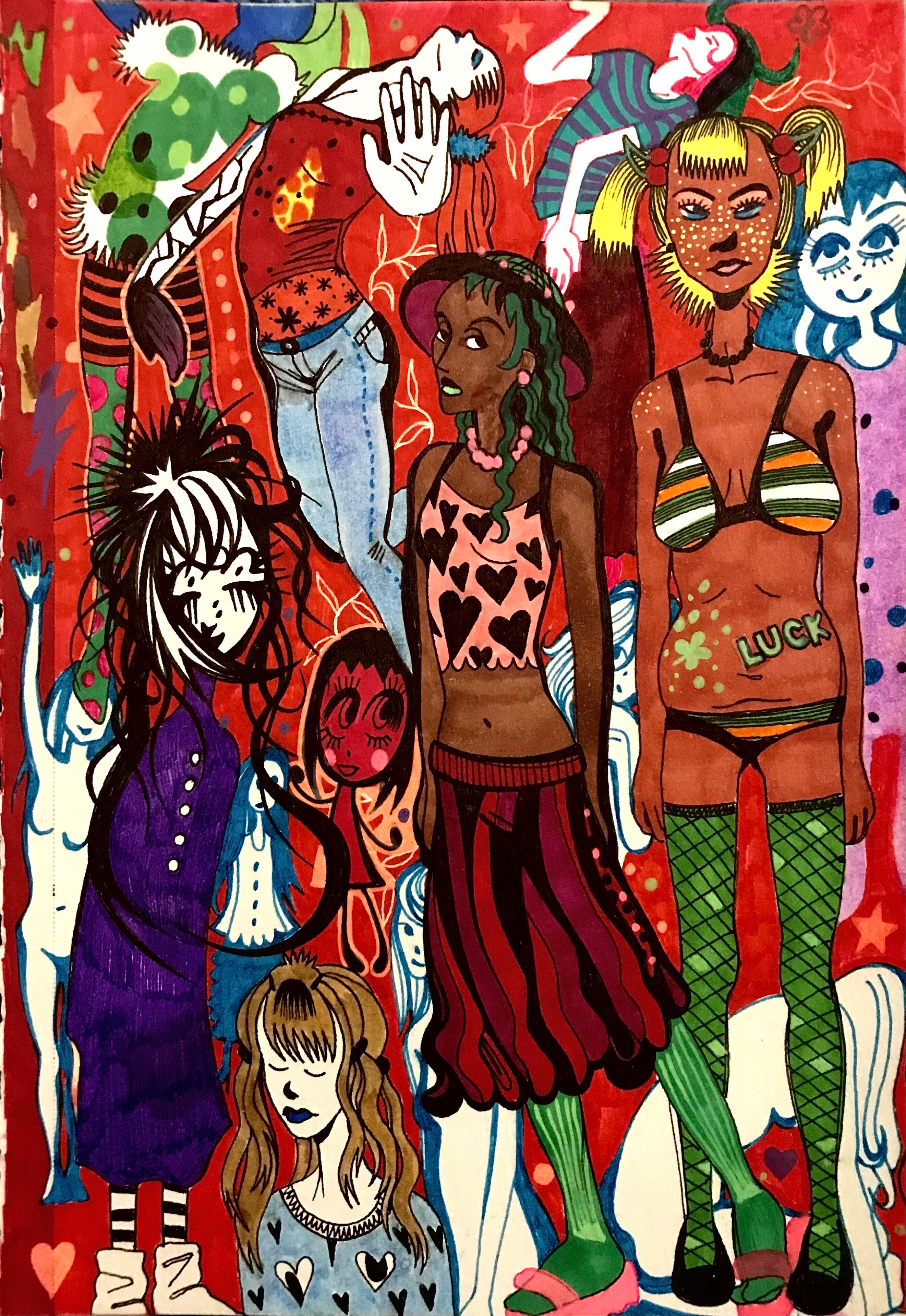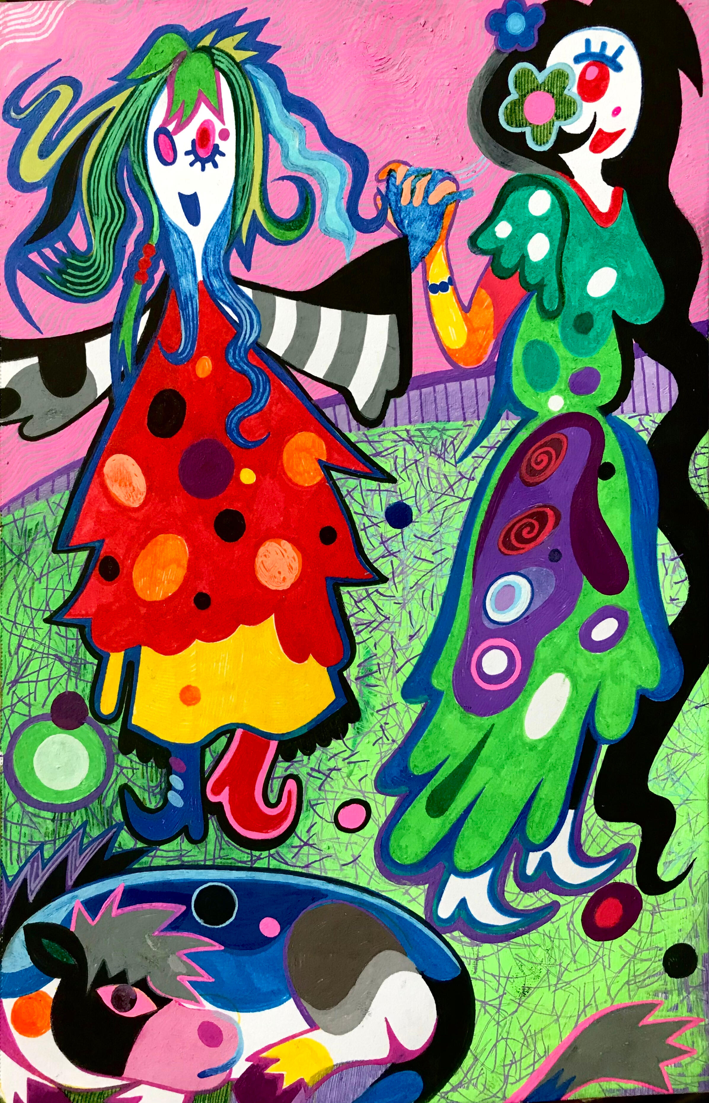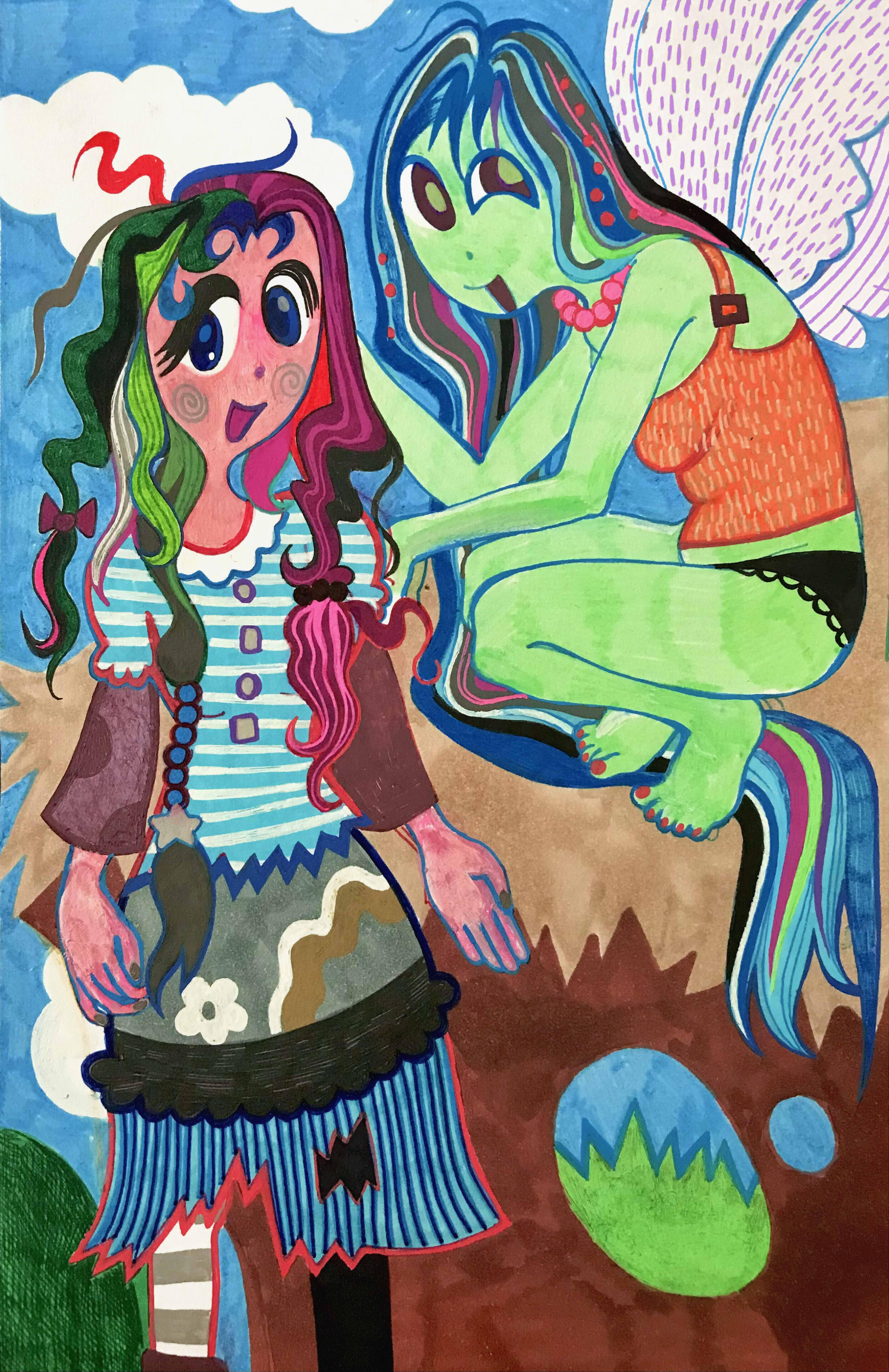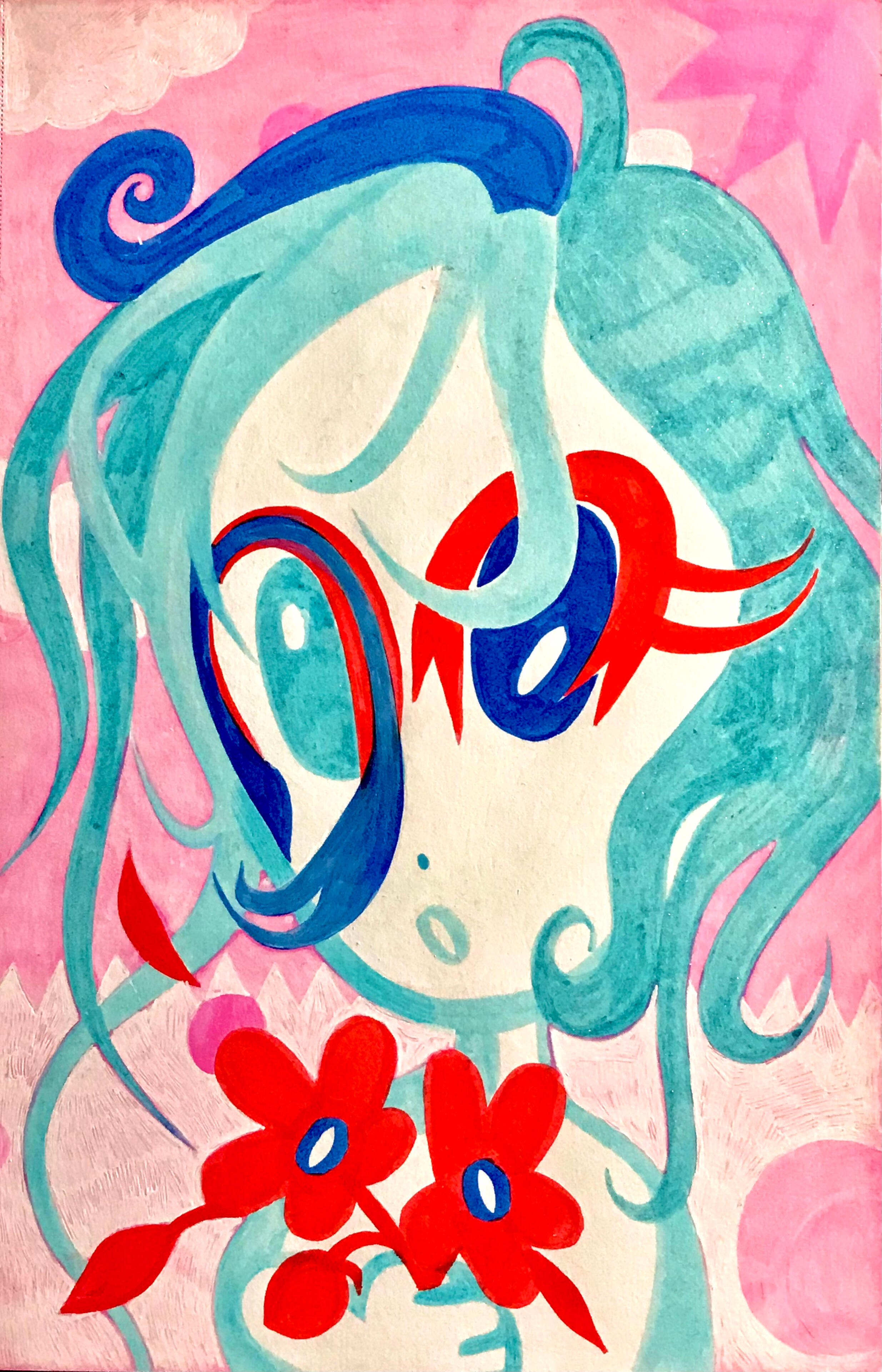 My current style is a result of about a decade of experimentation. Over time, I have experimented with materials such as oil pastels, gouache and acrylic paints, colored pencils, alcohol and water-ink markers, and gel pens (my favorite are gelly roll) to create these pieces. Nowadays I mainly gravitate towards acrylic and ink-based markers as well as gel pens. My work is usually rather small because I draw them in modestly-sized sketchbooks.Some artists that inspire me are si_ku, Aya Takano, ob , Tama, Karla Gerard, and Macato Takahashi