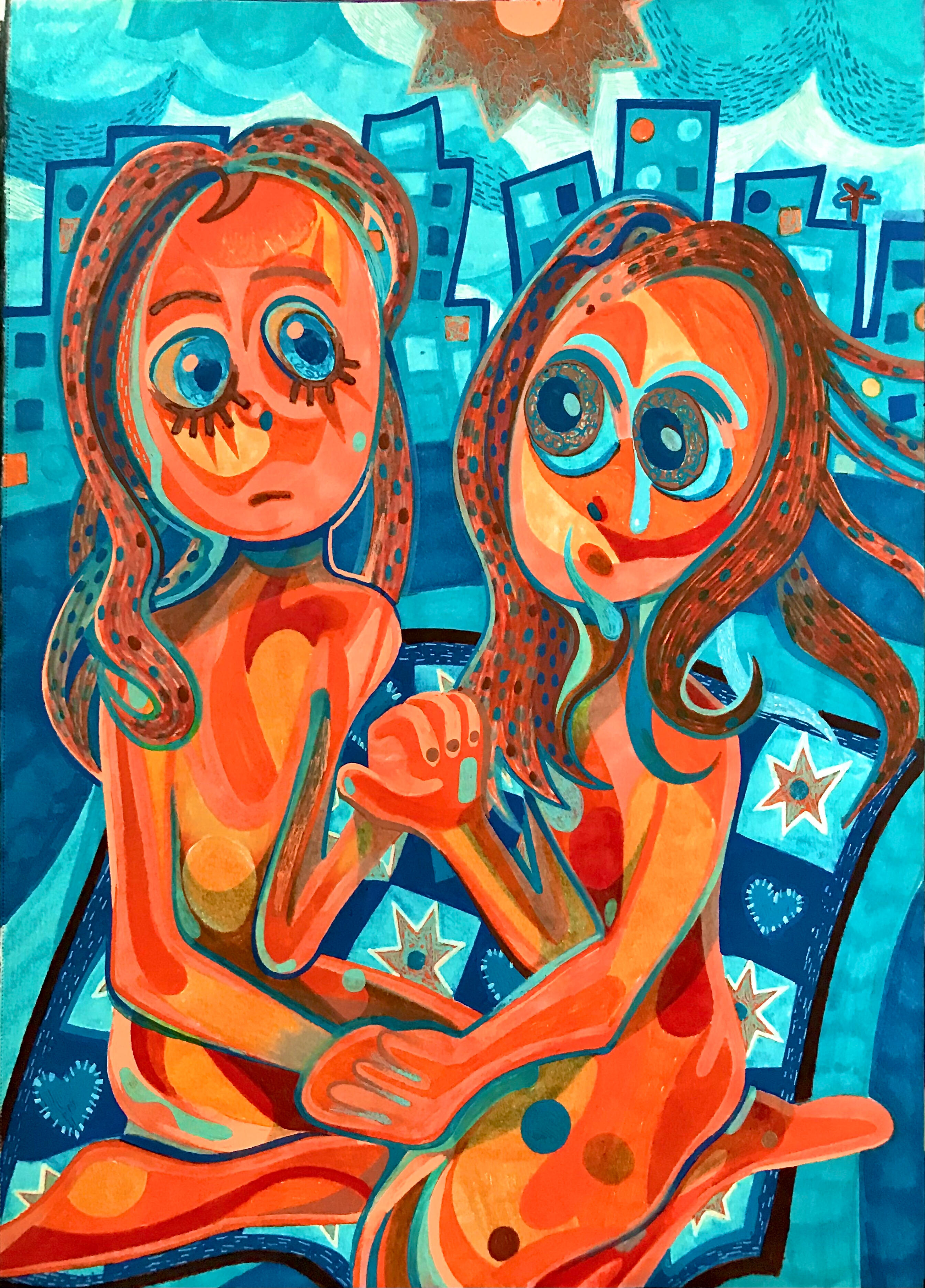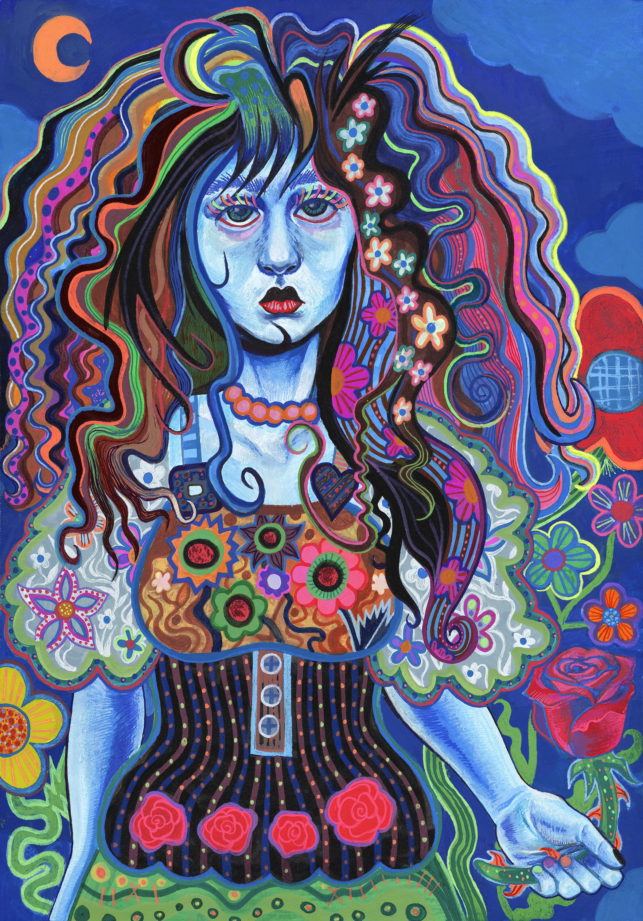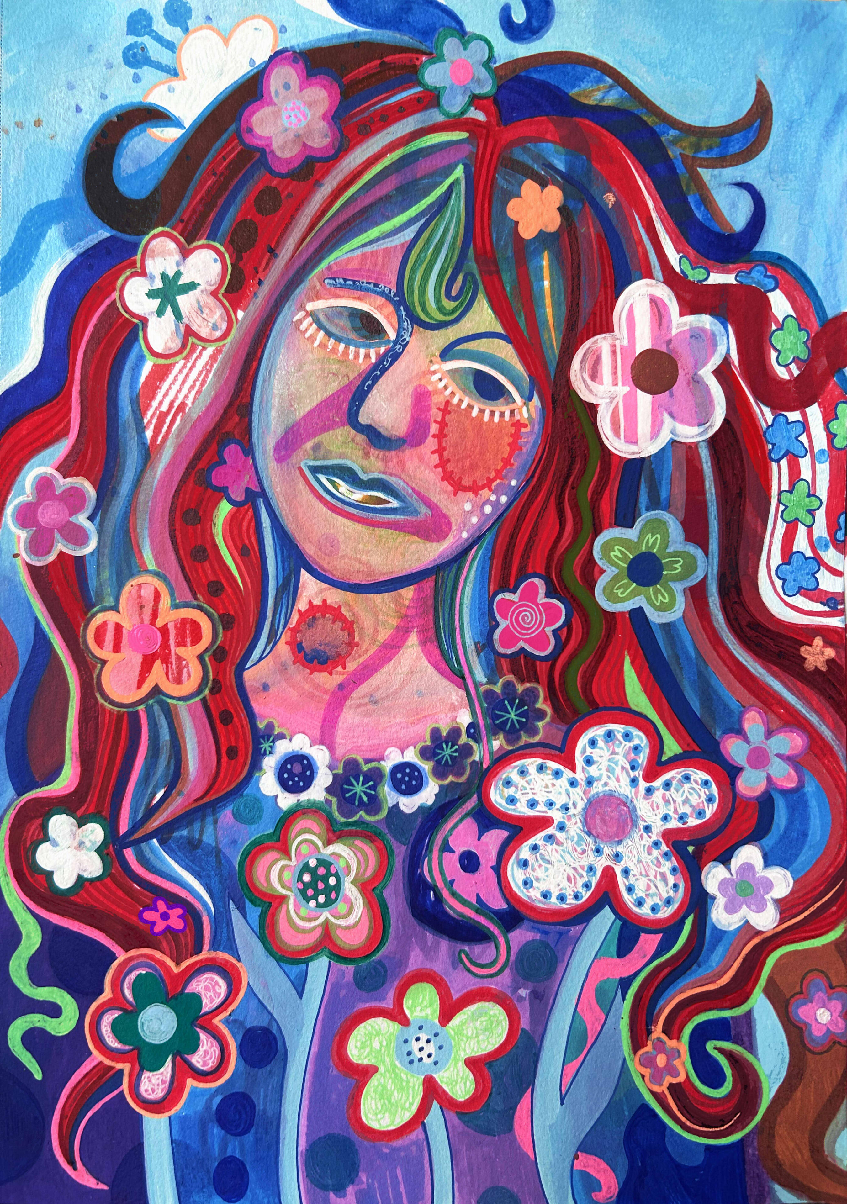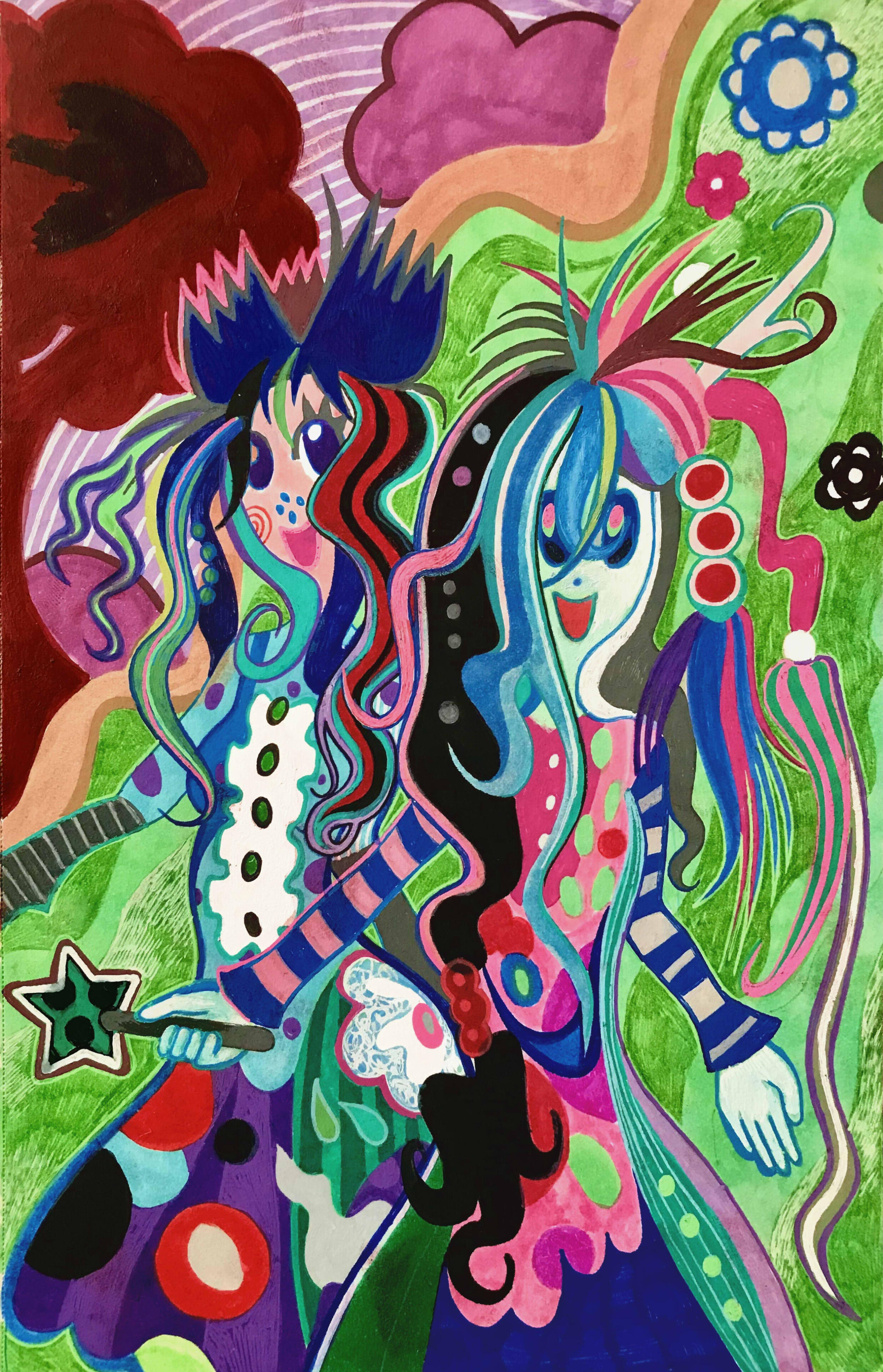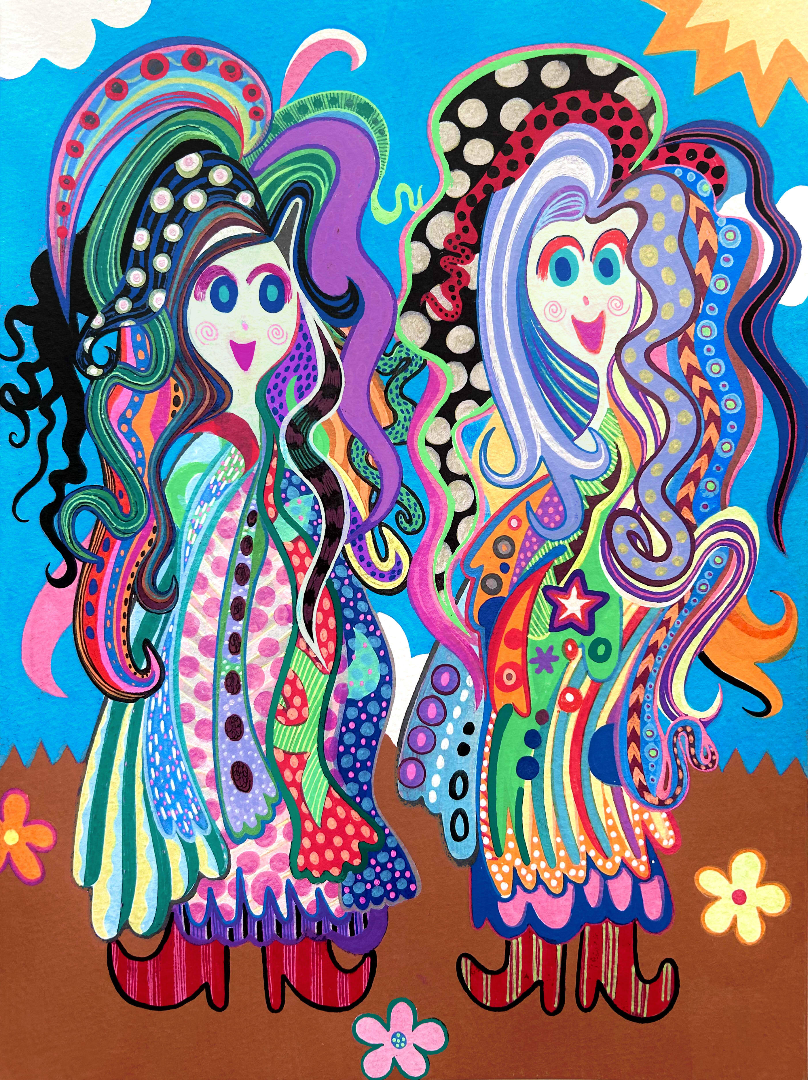 My current style is a result of about a decade of experimentation. Over time, I have experimented with materials such as oil pastels, gouache and acrylic paints, colored pencils, alcohol and water-ink markers, and gel pens (my favorite are gelly roll) to create these pieces. Nowadays I mainly gravitate towards acrylic and ink-based markers as well as gel pens. My work is usually rather small because I draw them in modestly-sized sketchbooks.Some artists that inspire me are si_ku, Aya Takano, ob , Tama, Karla Gerard, and Macato Takahashi