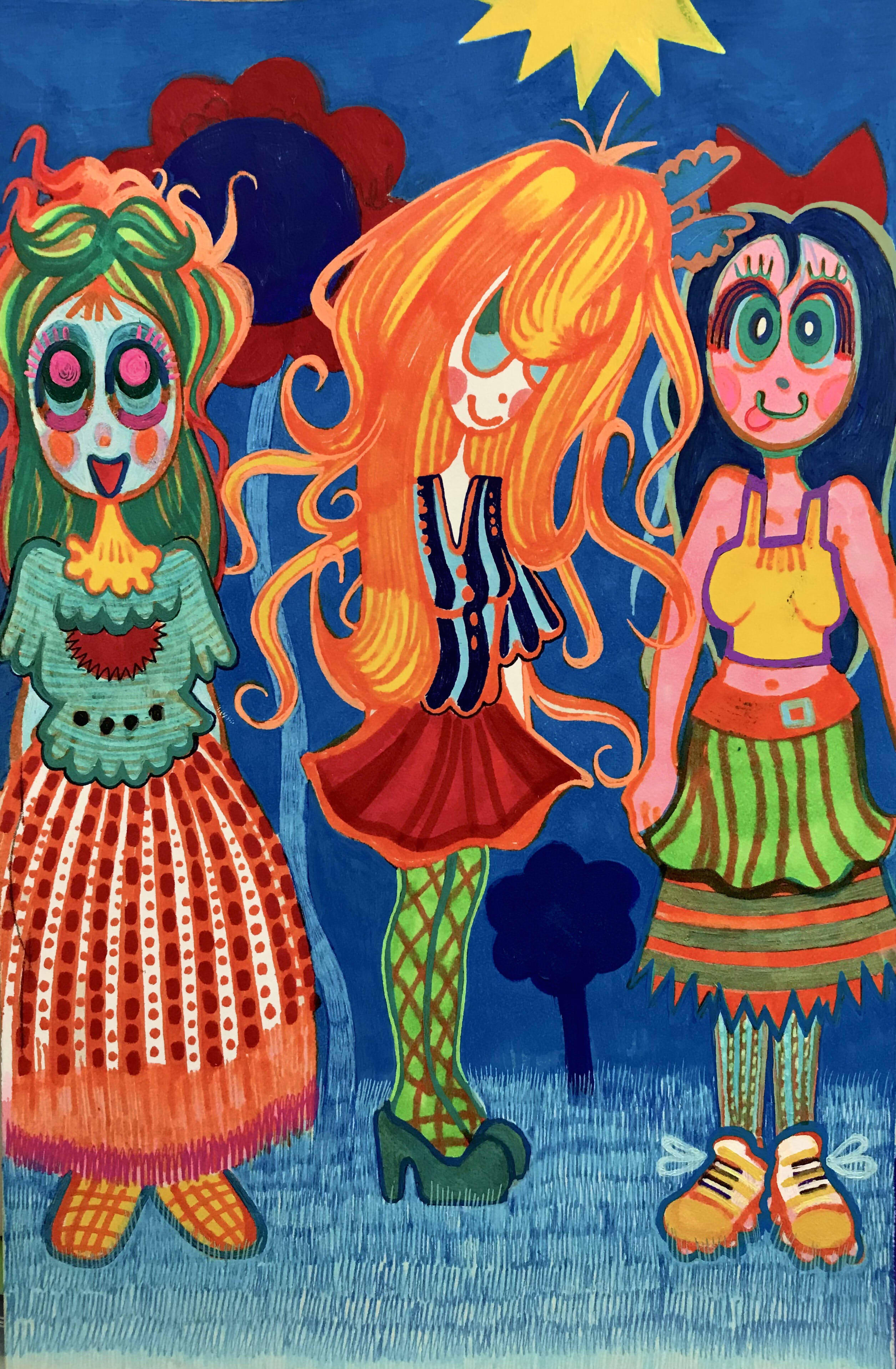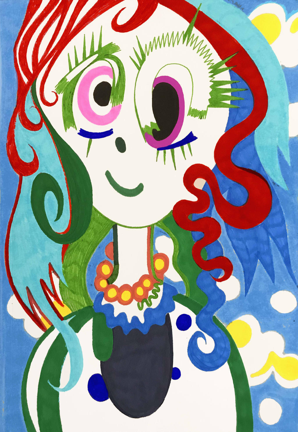 My name is Katherine Siniuk and I'm an artist from Greenbelt, Maryland. I am mostly self-taught and create art that is colorful, surreal, and creepy and/or cute depending on your perspective. My work is mostly mixed media (acrylic and ink-based markers) on mixed media paper, but I also occasionally sculpt. Please click the buttons below to see more of my work, or if you'd like to contact me.